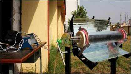 Two portable collectors (concentrated parabolic and flat plate) have been fabricated and experiments are conducted to evaluate their performances. Development of single axis solar tracking system and solar thermal storage system are going on. Further numerical investigation on heat transfer enhancement in solar air heater with artificially roughened absorber plate has been carried out.