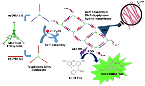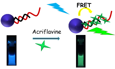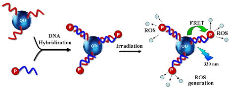 Aqueous soluble non toxic quantum dot (QD) can act as FRET donors to photosensitizers for generation of ROS in PDT. Moreover, QD offer surface modification for conjugation with DNA that self assemble to create interesting nanoassembly for targeted PDT applications. |